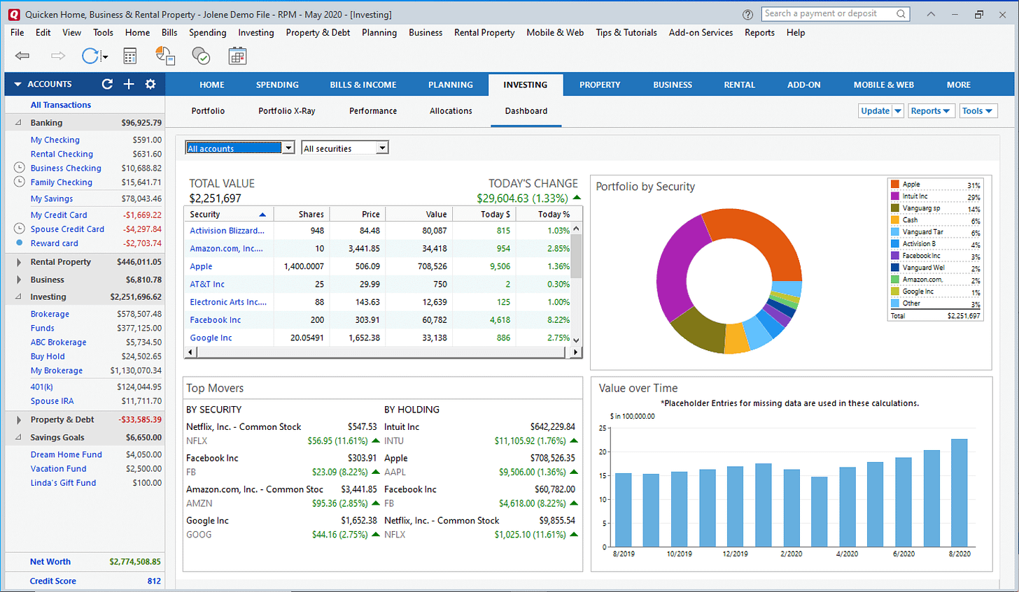 I use Quicken Classic, but many people can get by with Quicken Simplifi at about half the annual cost.