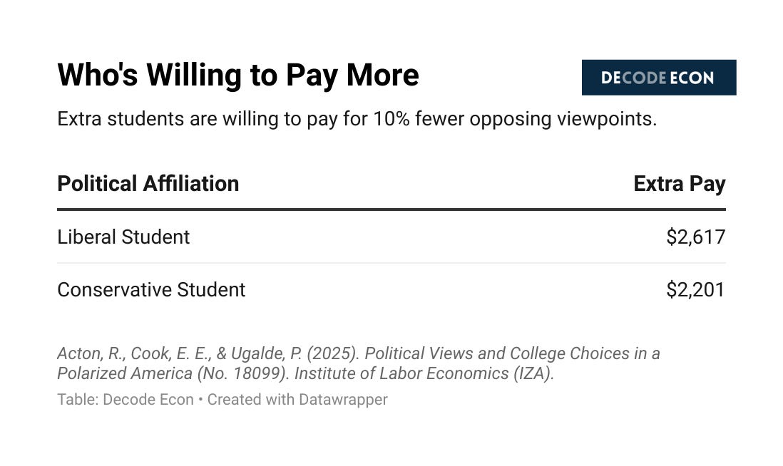 Liberals are willing to pay more to attend campuses with more liberals and fewer conservatives.