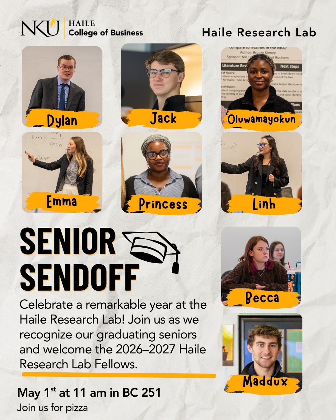 If you are in the Cincinnati area, join us on May 1 for the senior send-off. Eight of our students graduate, and we will welcome 12 new members to the Haile Research Lab.
