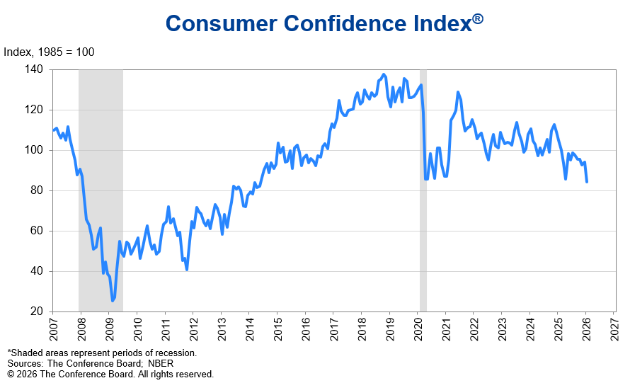 The headline number fell sharply in January. But the real story isn’t just that confidence fell; it’s who is losing confidence the fastest.