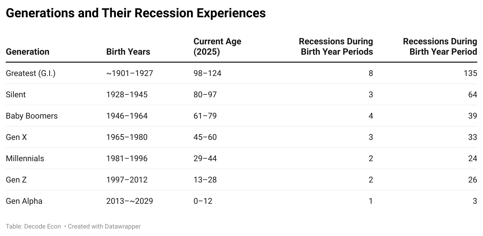 Recessions are never shared equally. Whether as a child, a student, or a young worker, the timing of a downturn leaves marks that shape opportunities and identities for entire generations. Today’s economy may be more stable than in the past, but the scars of recessions still run deep. Behind every headline and data point are real people whose economic experiences shape not just their finances, but their outlook on life for a lifetime.