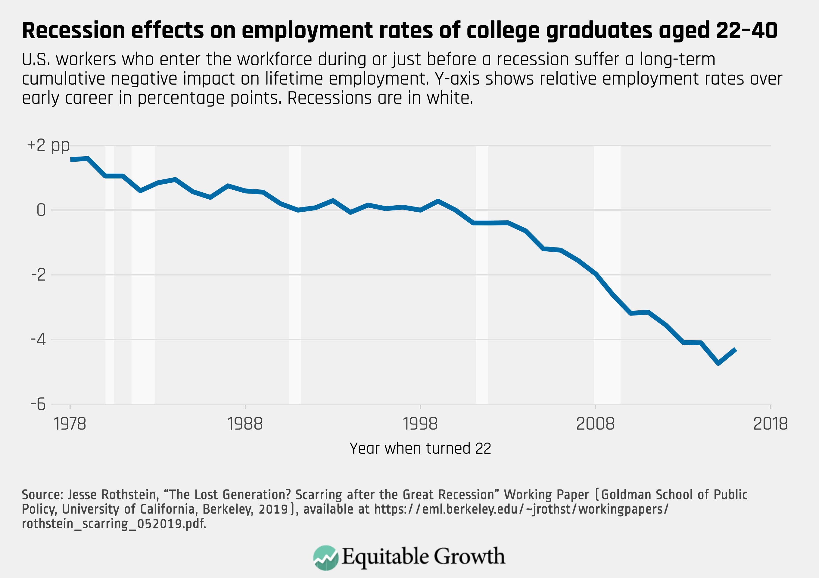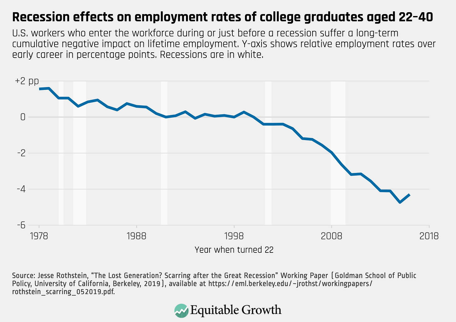 UC Berkeley’s Jesse Rothstein finds that graduates starting their careers during a recession face permanently lower earnings and employment rates.