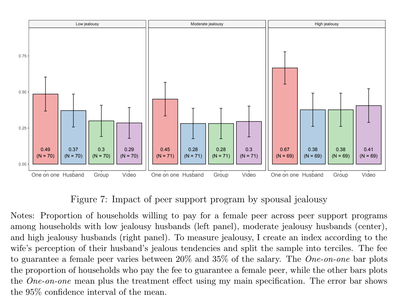 Rajah’s job-market paper, “The Female Labor Supply Constraints of Spousal Jealousy: Experimental Evidence from India,” is one of the most innovative empirical papers I’ve read this cycle. It uses two field experiments in Patna, India, to study how much household dynamics shape women’s work decisions. The results are powerful.