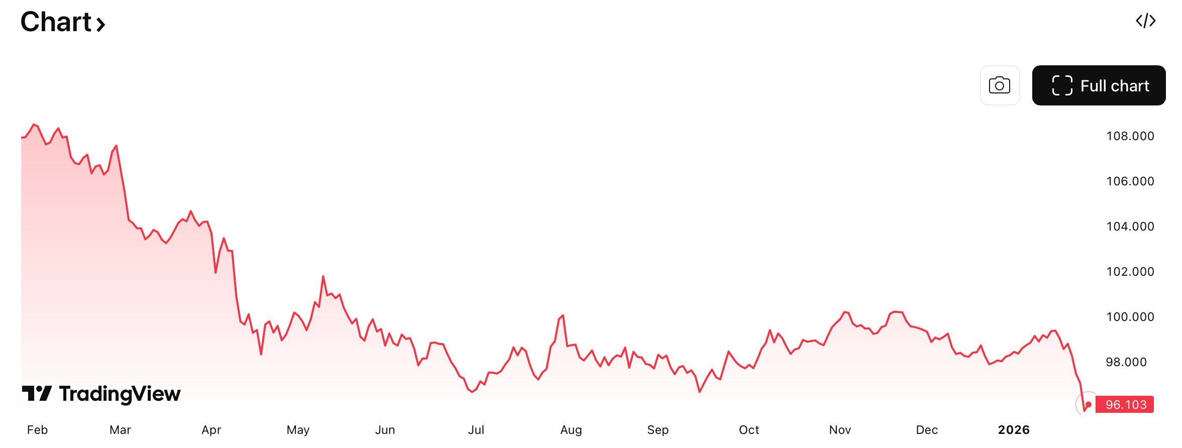 The DXY U.S. Dollar Index, which measures the dollar against a basket of major currencies—including the euro, yen, and pound—is down roughly 10.75 percent year over year. The index peaked in early February 2025, dropped sharply in March, and fell again through April amid renewed tariff uncertainty.